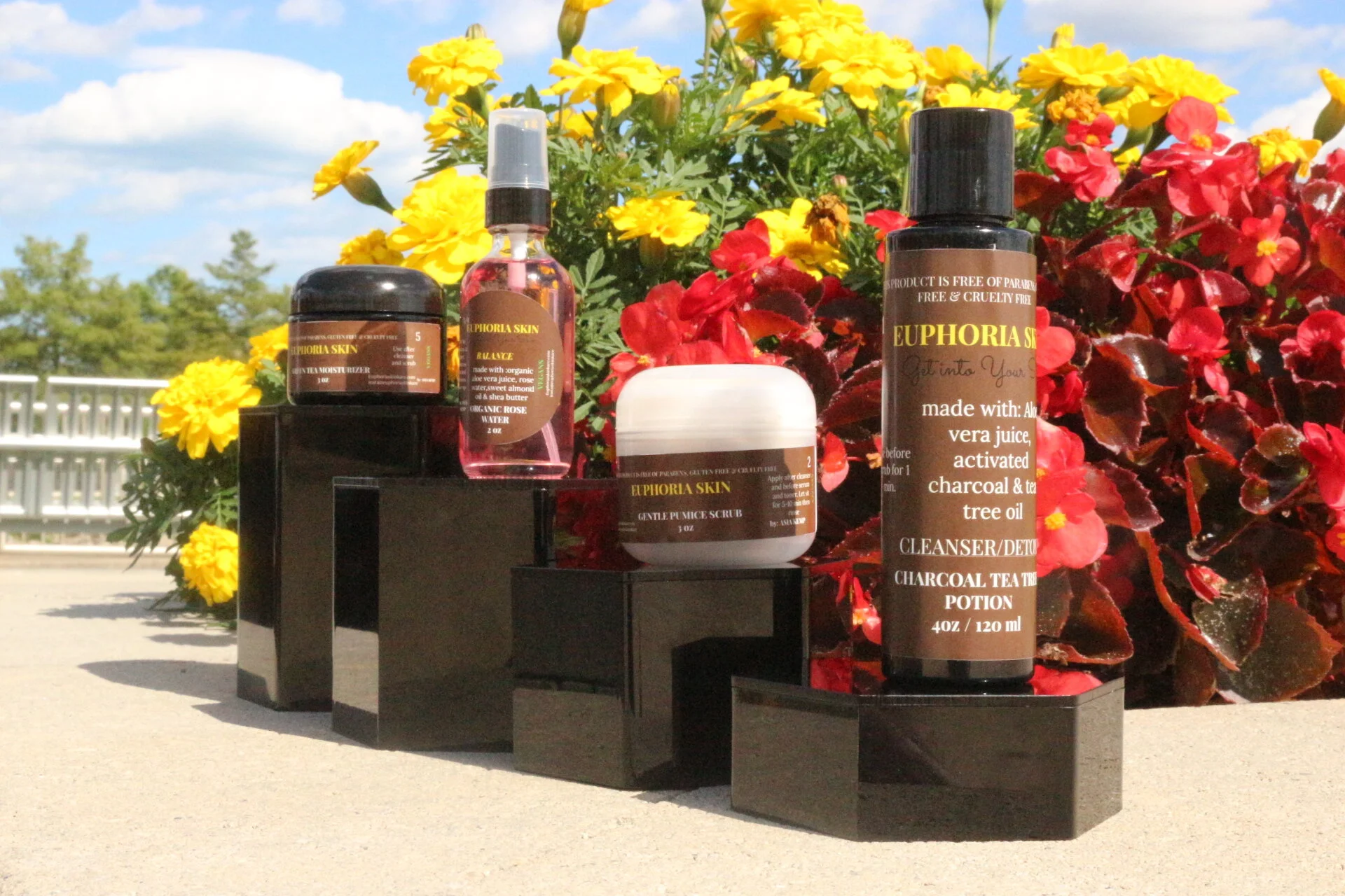For Sure Hair Growth Oil $15.00 Finish Touch Enhance Serum $29.00 Gentle Pumice Scrub $25.00 Charcoal Tea Tree Potion $25.00 Organic Rose Water $25.00 Green Tea Moisturizer $28.00 MayDay Scrub $25.00 Rose Bud Oil $28.00 Turmeric Mud Mask $35.00 Beard Game $25.00 Snap Back Kit $125.00 Glow Kit w. Green Tea Moisturizer $100.00 Pink Champagne Lip Scrub $15.00 Lady's Mantle Tea $20.00 Slim Meh Tea $20.00 Booty Meh Tea $20.00 Get into your skin. CLICK!! How I Repaired my skin with Euphoria Skin
